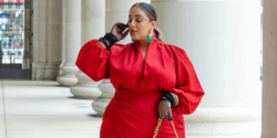 А на вечерний прием надевайте розовое бархатное платье – и будете выглядеть сногсшибательно. А сверху – тренч или пальто в тон. Золотой отблеск в аксессуарах и обуви добавит роскоши образу.